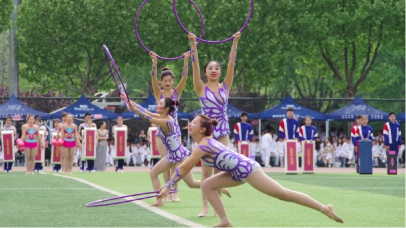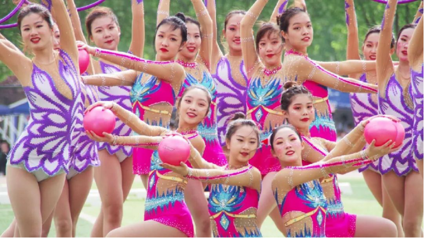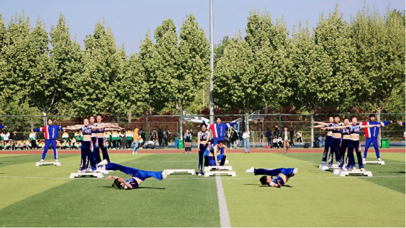 舞动青春活力的啦啦操和艺术体操队伍用热情点燃全场,展现了不一样的青春色彩。