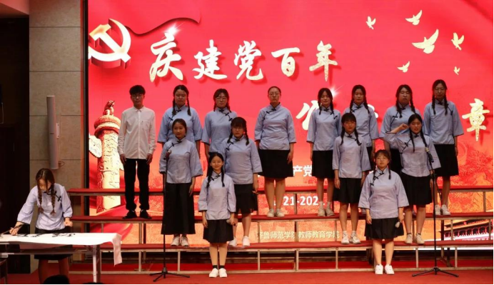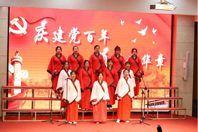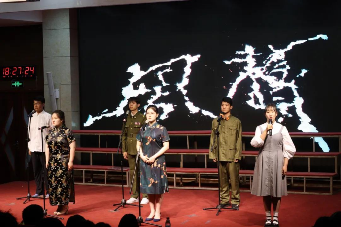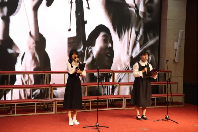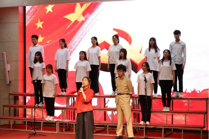 当那首《我的祖国》的歌声响起,我们的心田仿佛飘起了鲜艳的五星红旗;一朵朵盛开的《绒花》,献给我们亲爱的祖国;悠扬的《十送红军》,让我们回忆起革命年代感人的军民情;《祖国不会忘记》我们,我们也将永远铭记祖国;话剧《风声》让我们身临其境地领略到共产党人的民族大义忠贞与坚韧。百年红色薪火,代代相传,伟大的革命先辈们伴着血泪开辟道路,无数英勇烈士献身革命,这百年充满艰辛,充满险阻,我们不敢忘、不能忘,也不曾忘!