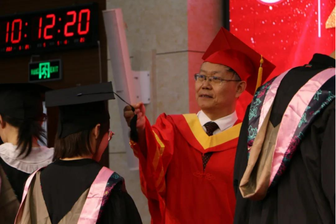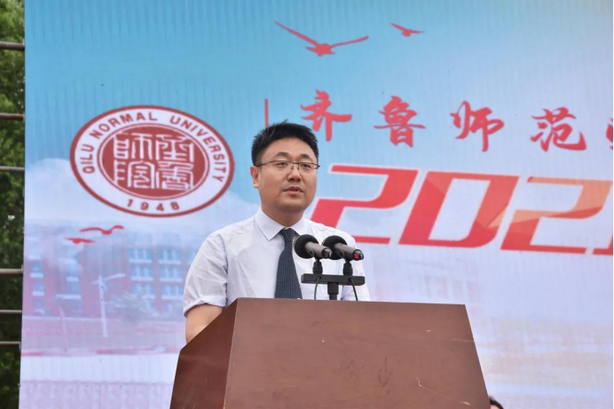 最后,由林松柏校长致辞。林校长首先对4497名毕业生在党的百年华诞前夕顺利完成学业表示热烈祝贺,并对几年来为学校快速发展辛勤付出的同学们表示感谢。林校长带领学子们回顾四年前的讲话与承诺,用学习成绩的比较结果呼应四年前校长教导同学们学会学习,并引用《论语》中“逝者如斯夫,不舍昼夜”一句为同学们上最后一课。首先向学子们传递时光易逝,不可重来的道理,劝诫学子们珍惜并合理规划利用时间;其次希望学子们学习水的九德,透过现象看本质;再次要做决心行圣人之道的君子,自强不息,不可有须臾间断,就像河流一样,从“闻其道”的源头开始,生生不息。对于站在“两个一百年”的历史交汇点,面对百年未有之大变局的毕业生们,使命光荣,重任在肩,林校长给予厚望,并送给同学们“逝者如斯,不舍昼夜”八个字,勉励同学们惜时如金,抢抓机遇,坚持终身学习,学会管理时间,学会自我发展。林校长表示齐鲁师院将永远是学子们的精神家园和避风港湾,学校也会在未来快速发展,不断提高学校核心竞争力和综合影响力,祝福毕业生们此去繁花似锦,未来学有所成。