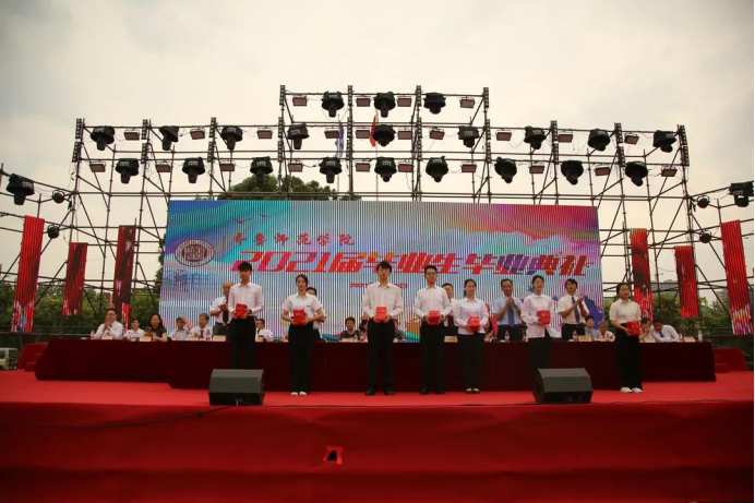 毕业典礼在庄严的国歌声中拉开了序幕。随后,由教务处处长孙洪兆宣读2021届毕业生毕业资格及学士学位授予情况审查报告。至此,毕业生们的大学生涯圆满落幕,离开这个共处多年的校园,或步入社会,或踏上读研之路,或奔赴远方。