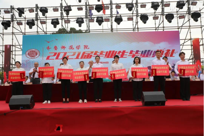 随后参加志愿服务西部计划志愿者颁发2021年大学生志愿服务西部计划优秀志愿者荣誉证书及奖金,激励同学们在奉献中创造属于自己的精,阔步前行、奋勇拼搏,用积极进取的人生态度,为实现中华民族伟大复兴的“中国梦”贡献自己的力量。