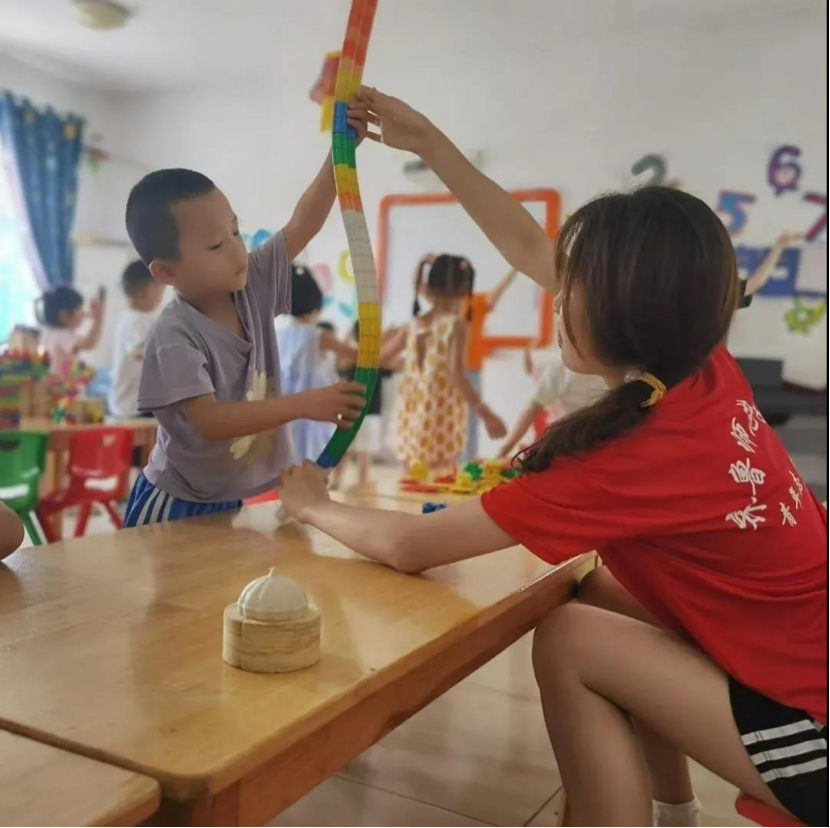 “一墙一处皆教育,浸润无声促成长”为了让无声的教育变为有声的启迪,7月16日,齐鲁师范学院教师教育学院星光服务队来到了济南市章丘区旭升幼儿园,开展了“童心向党,红色满园”主题活动。通过丰富多彩的红色课程和教育实践活动,引导幼儿从小听党话、感党恩、跟党走,厚植爱党爱国情怀,努力成长为中国特色社会主义事业的建设者和接班人。