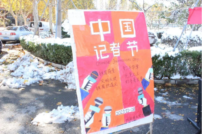 11月8号,是全国的第二十二个记者节,师院也迎来了第九个记者节,立冬已至,天虽寒冷,却无法冷却内心的温情。8号一大早,天刚蒙蒙亮,记者站的同学们披星戴月、冒着严寒开始了记者节这一天的准备工作。搬桌椅、摆礼物、挂横幅...宣传部贴上早就准备好的记者节宣传海报,采访部拿起话筒准备接下来的采访、站长团协调整个活动的开展、编辑部马不停蹄撰写新闻稿、其他各部也纷纷“轻装上阵”摩拳擦掌准备大展身手.......记者站同学的暖暖笑脸驱散了这个初冬清晨的寒意。