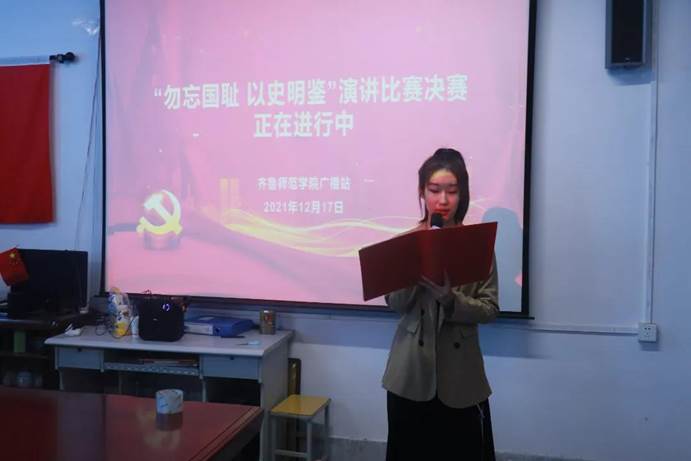 为贯彻落实中央精神,牢记侵略战争给中国人民造成的深重灾难,进一步激发学生的爱国主义情怀,坚定同学们共产主义理想信念,凝聚实现中华民族伟大复兴的磅礴力量,12月17号上午,在齐鲁师范学院历下校区209会议室举行了以“以史为鉴,勿忘国耻”为主题的演讲比赛总决赛。