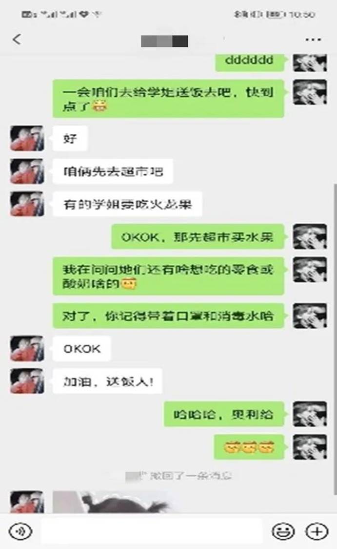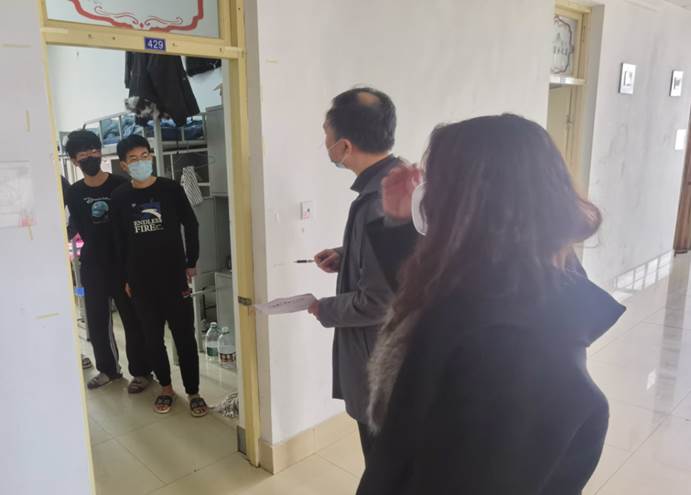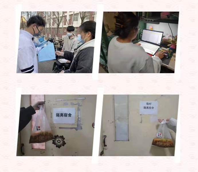 “我会每天按时抵达集合地点,为隔离宿舍提供送餐后勤服务、帮助他们拿取快递、购买生活必需品等;为进一步降低安全隐患,我们采取的是“无接触式”服务;我们也会通过微信、电话询问隔离同学的身体和生活情况,及时了解各类需求,并在精神上进行鼓励支持,帮助排解他们的身心压力。同时,我们还帮忙给各班发放隔离防护用品,并提醒同学们做好防护工作;安排专门人员不定期对隔离宿舍进行消毒,时刻掌握隔离人员身体情况。”