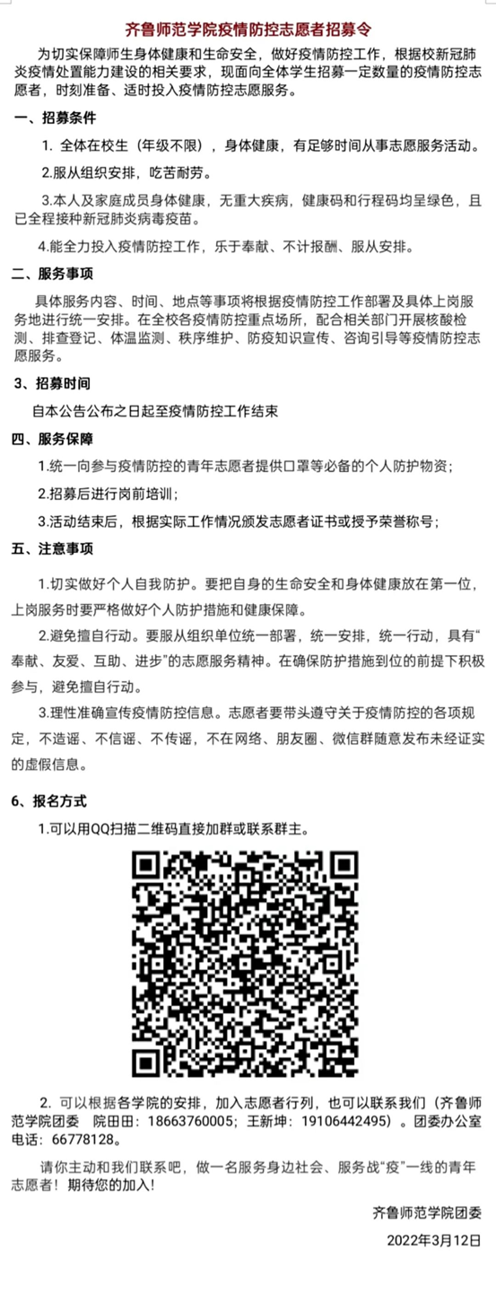 寅虎年后,面对山东省突如其来的疫情,为严格落实防疫举措,确保师生平安健康,保卫校园安定有序,全力以赴筑牢疫情防线,齐鲁师院青年志愿者协会紧急集合志愿者,成立疫情防控后备队。