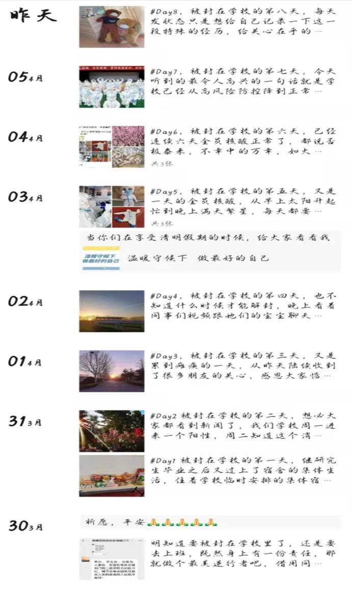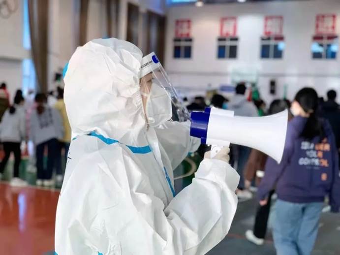 忙碌在体育馆里的身影是日夜不得休息的你;早上六点拿着一个饼是急急忙忙跑往核酸检测处维持秩序的你;下午三点是满心关切为学生做心理辅导的你……疫情无情,人间有情,疫情阻隔了我们的相遇,但我们知道,老师的心永远同我们在一起!