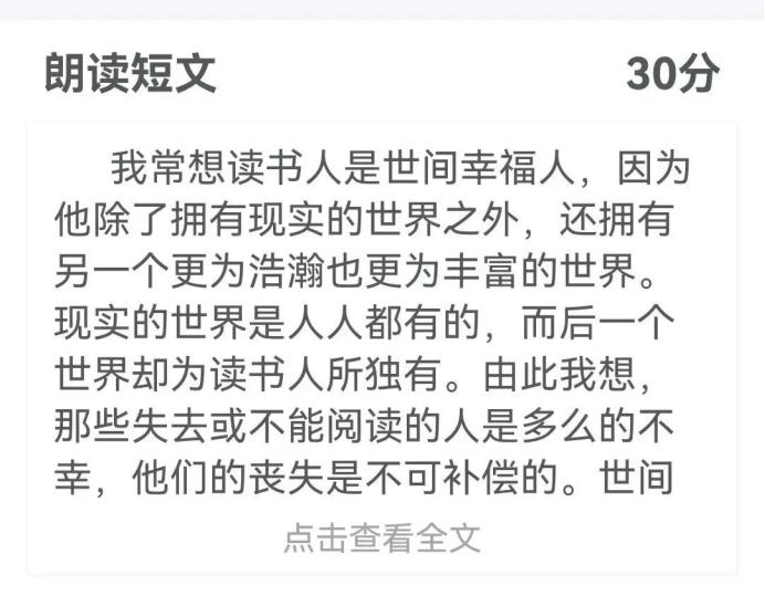 3,朗读过程中,请注意主屏下方的时间提示,确保在规定的时间内完成每项考试;