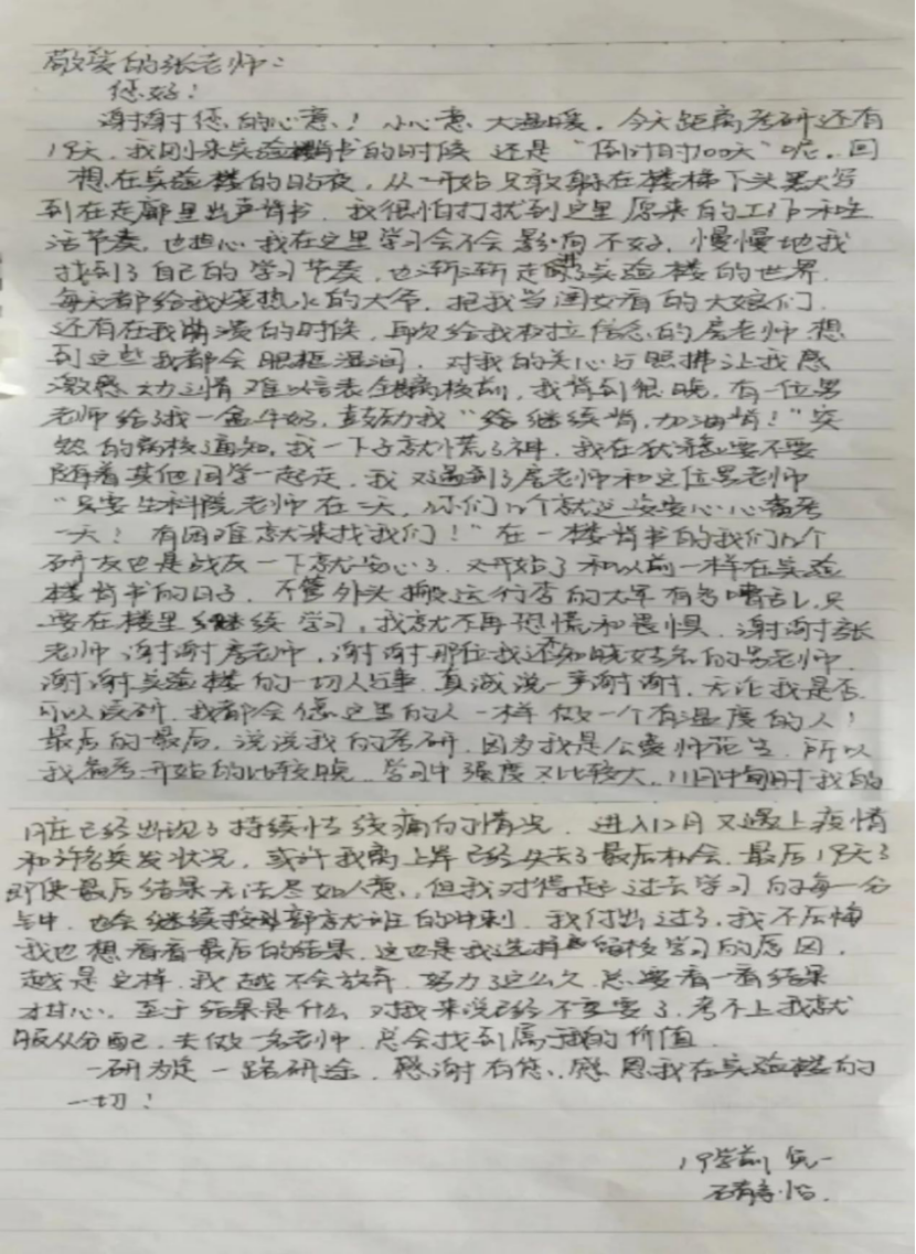 感谢学院对我们的关怀,在这紧张的考研备战期间,能够收到学院精心准备的考研礼包,给予了我莫大的温暖和鼓励。收到这些礼物,惊喜之余是满满的感动,考研是一条漫漫长路,孤独而又枯燥,是学院时刻的陪伴和无微不至的关怀让这条路变得不再那么困难。考研将至,我定不会辜负学院的期望,一定会全力以赴,不遗余力,发挥出自己最好的水平!也希望考研的大家都能守得云开见月明,一日看尽长安花。