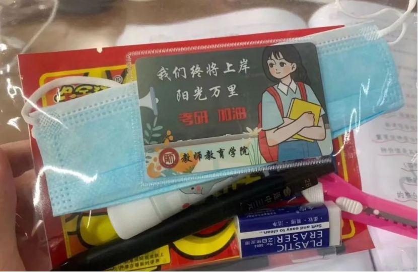 真的很感动,特别感谢学院送的“考研大礼包”,里面不仅有文具还特别贴心的准备了有暖贴口罩和胶棒等,还有精美的考研加油小卡片,让我感觉我不是单枪匹马的在奋斗。在冲刺的这段时间里,我们都要拿出最好的状态,不留遗憾,考研是一篇文章的尾声,也是另一篇文章的序章,祝我们成功上岸,加油!