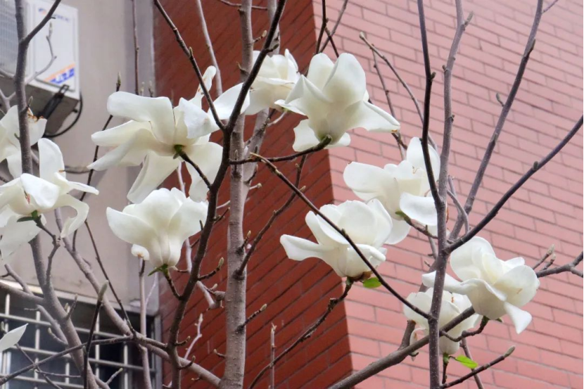 玉兰花迎风摇曳
