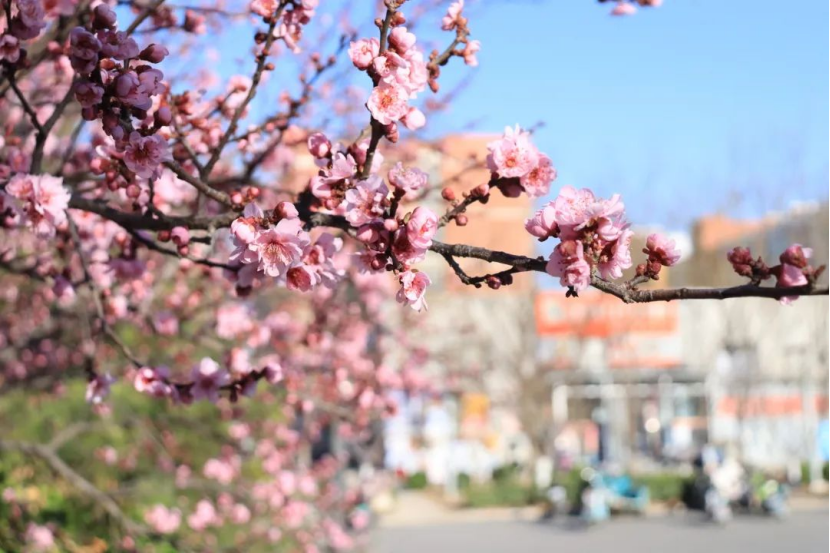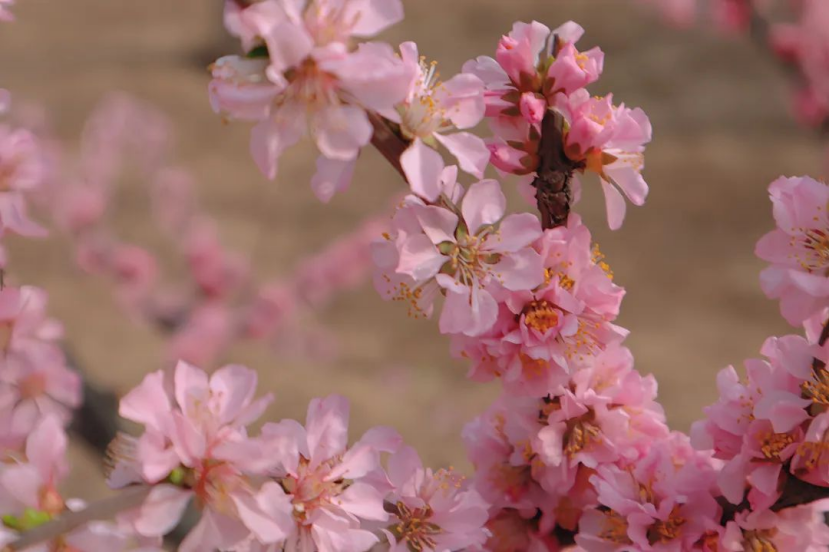 不远处一片粉白映入眼帘