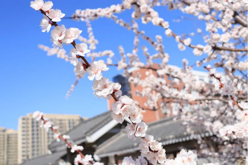 原来是杏花在阳光下竞相开放
