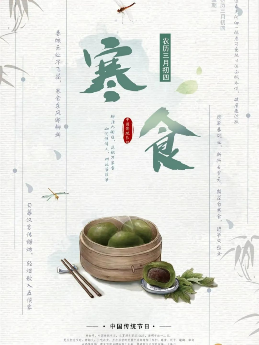 禁烟冷食:为纪念介子推,这一天禁止点火开灶,进食寒食。