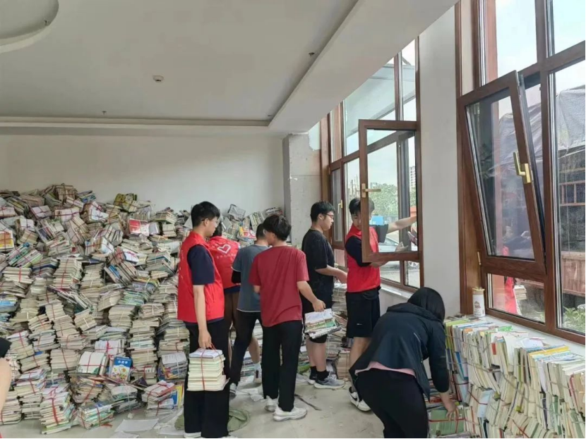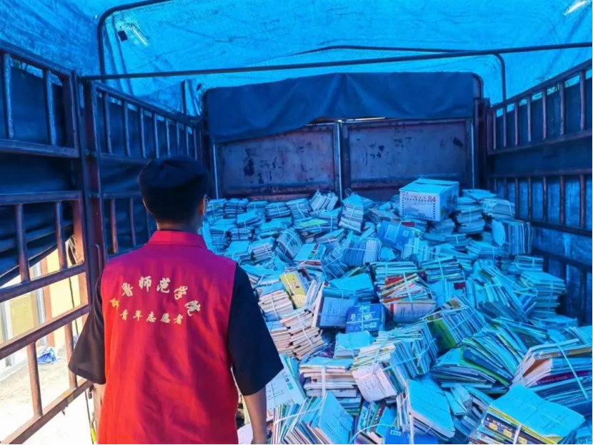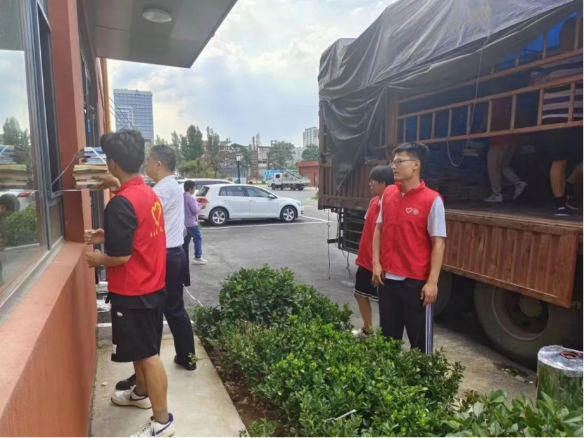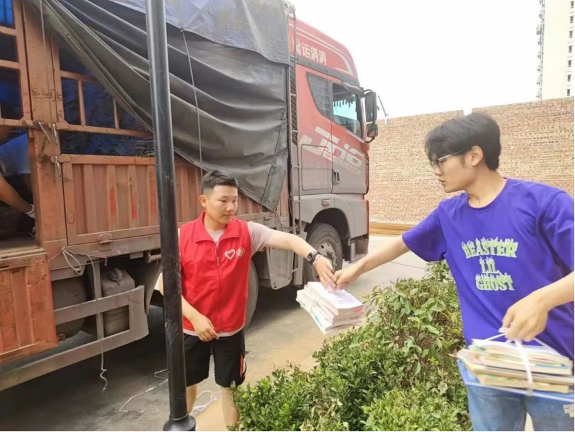 志愿服务伊始,志愿者认真了解活动内容并进行工作分配。六月,骄阳似火,点燃志愿者如火的激情,志愿者听从指挥,与同伴相互配合分类整理同学们捐赠的图书。清点完成后,志愿者又将图书搬进载满未来的运输货车中。志愿者奔跑的身影,挥洒的汗水,都是志愿者传递爱的体现,展现出了青年奉献、友爱、互助、进步的精神。
