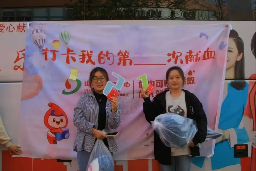 志愿者会为献血同学发放无偿献血证以及纪念品,并告知其献血之后的注意事项,同时会给献血者发放面包牛奶等补给食物,来为献血后的身体补充能量。最后,献血者可以进行献血次数打卡拍照留念。