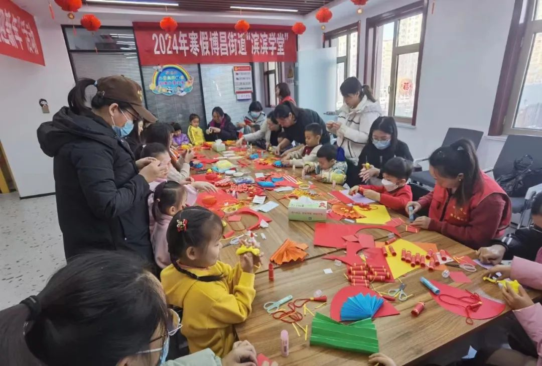 滨州市博兴县博昌街道“滨滨学堂”开设手工制作课堂。