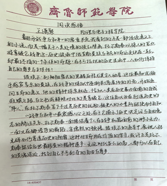 物理与电子工程学院 王潇檠