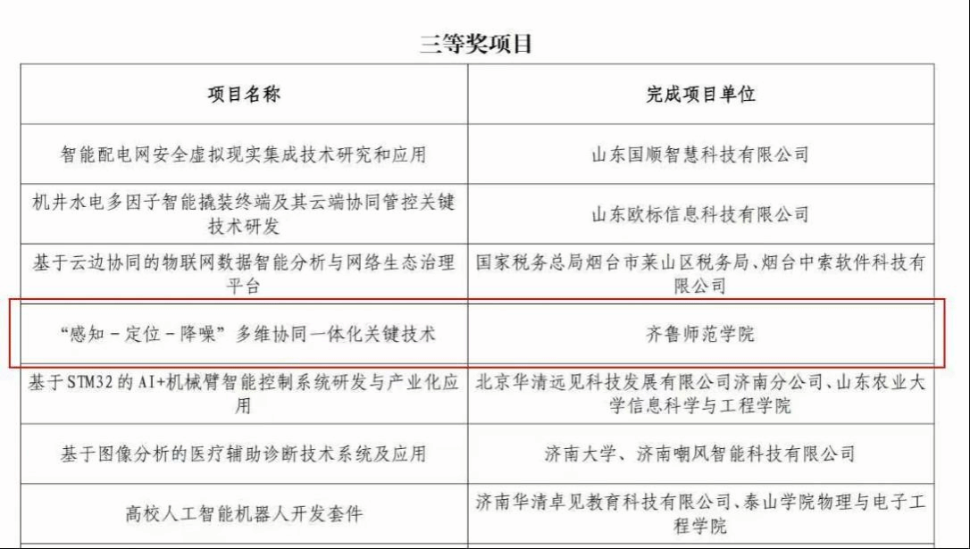 山东省物联网协会科技进步奖是依据《国家科学技术奖励条例》设立的社会力量科技奖项,获奖项目代表着山东省物联网领域技术研发与产业应用的先进水平,具有较高的行业权威性和认可度。本次评选中,物理与电子工程学院与泰华智慧产业集团股份有限公司、山东泰华照明科技有限公司联合完成的《基于人工智能的城市智慧照明应急管理平台及装置》项目荣获一等奖,学院独立完成的《“感知-定位-降噪”多维协同一体化关键技术》项目荣获三等奖,两项成果均凭借技术创新性、应用实用性得到评审专家的高度评价。